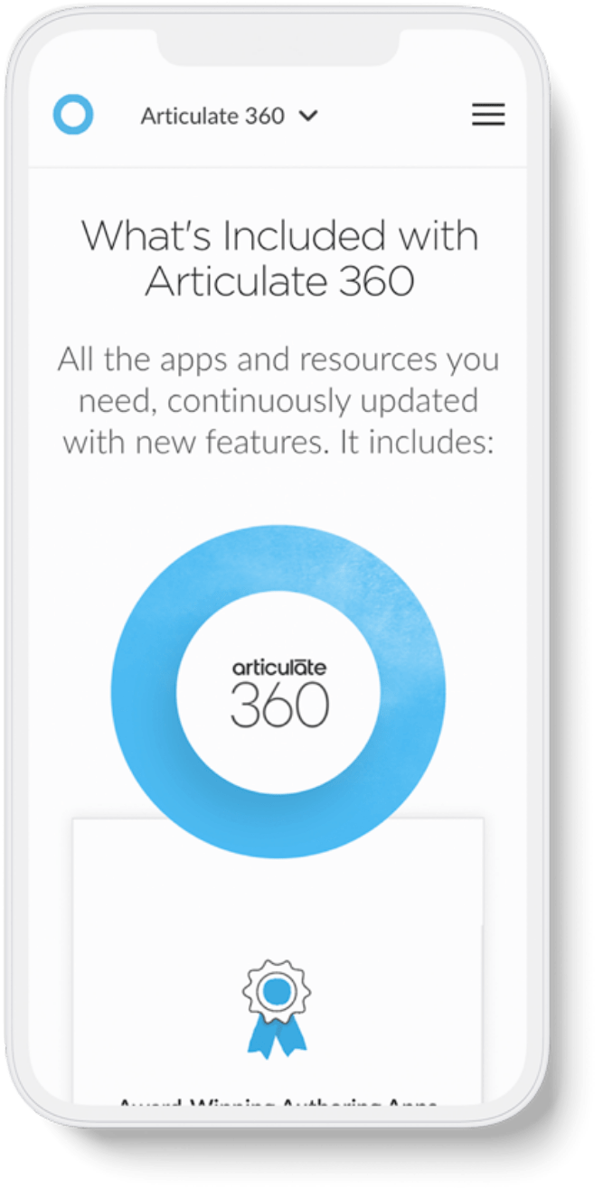 Get access to award-winning apps Storyline 360 and Rise 360, 7+ million stock assets, a project review app to collect feedback, and online training led by industry experts, all in one subscription
